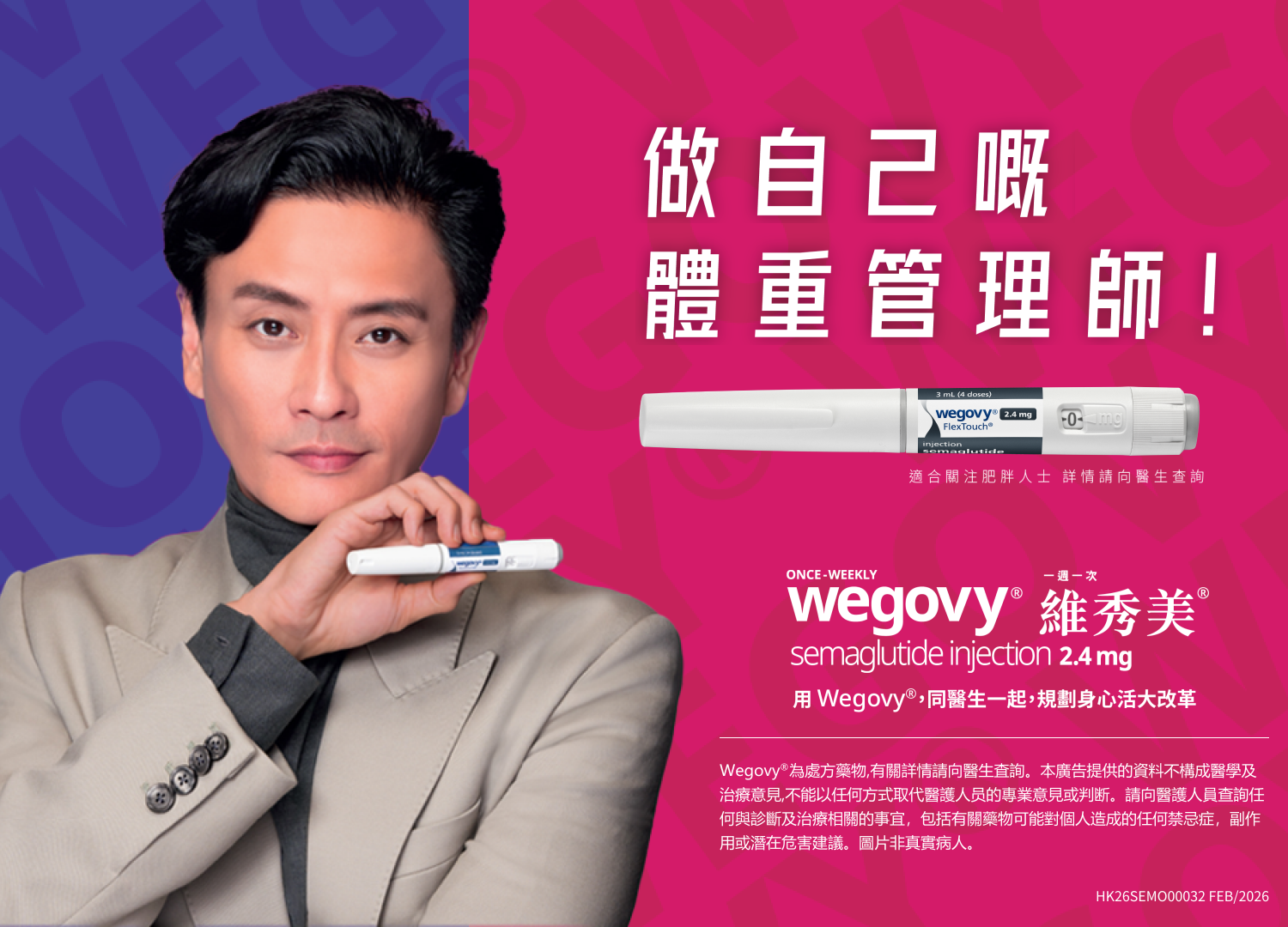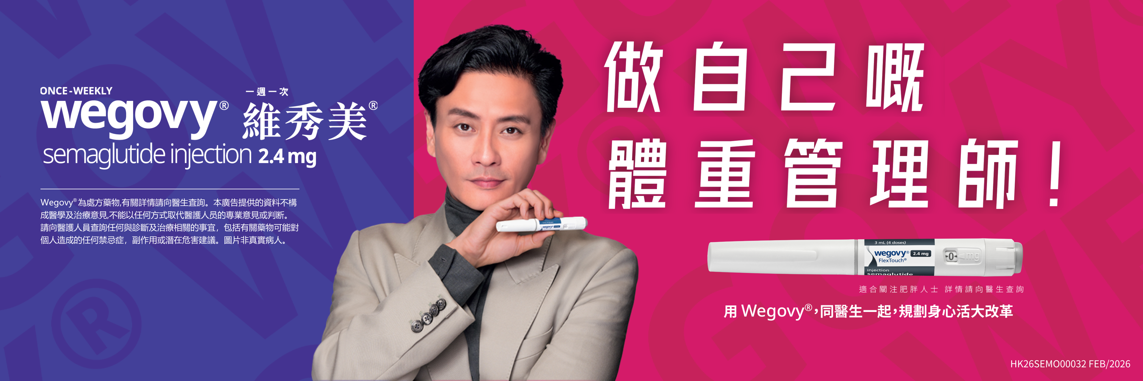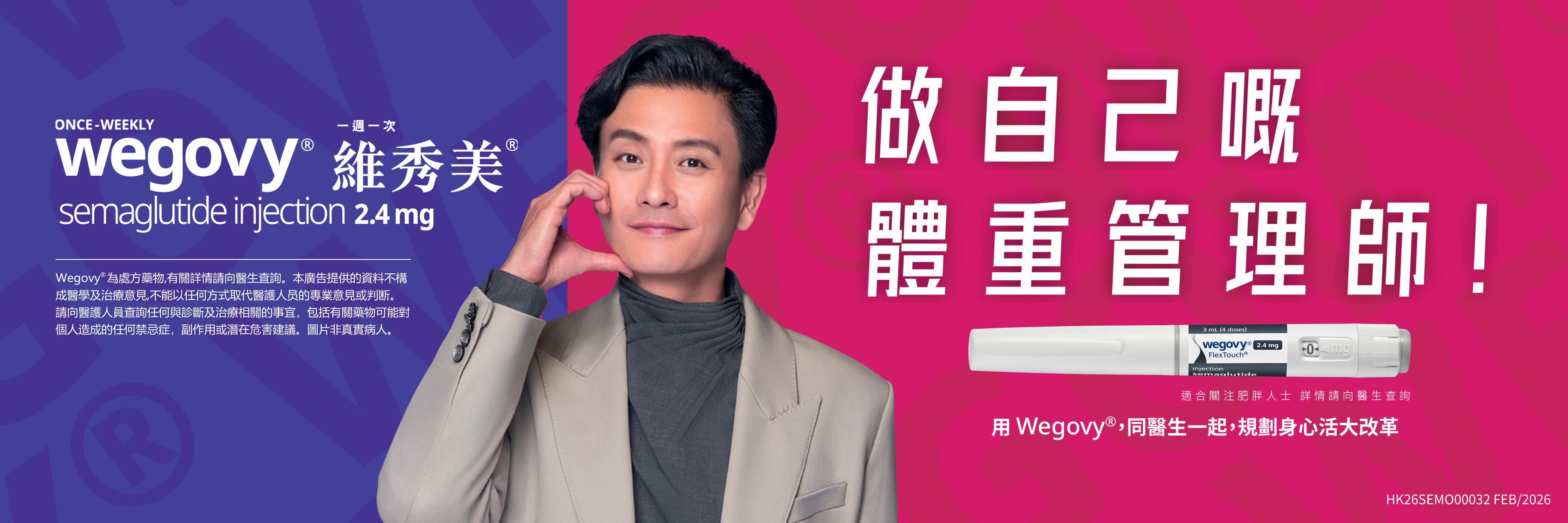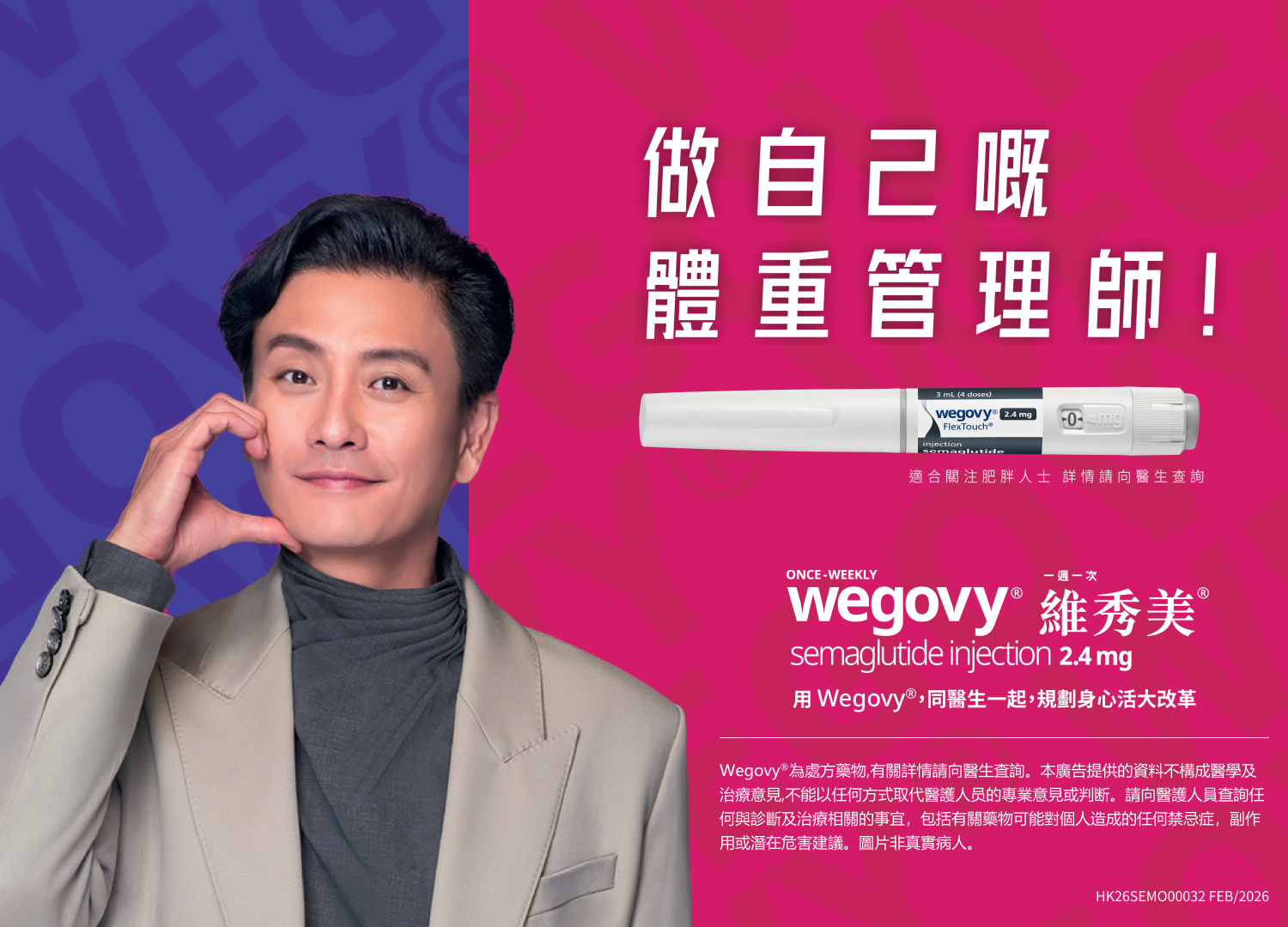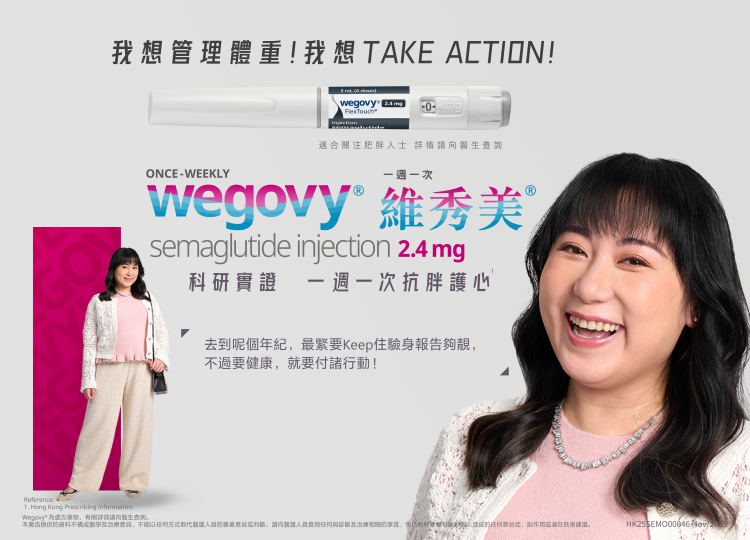 參考資料 Wegovy®為處方藥物,有關詳情請向醫生查詢。