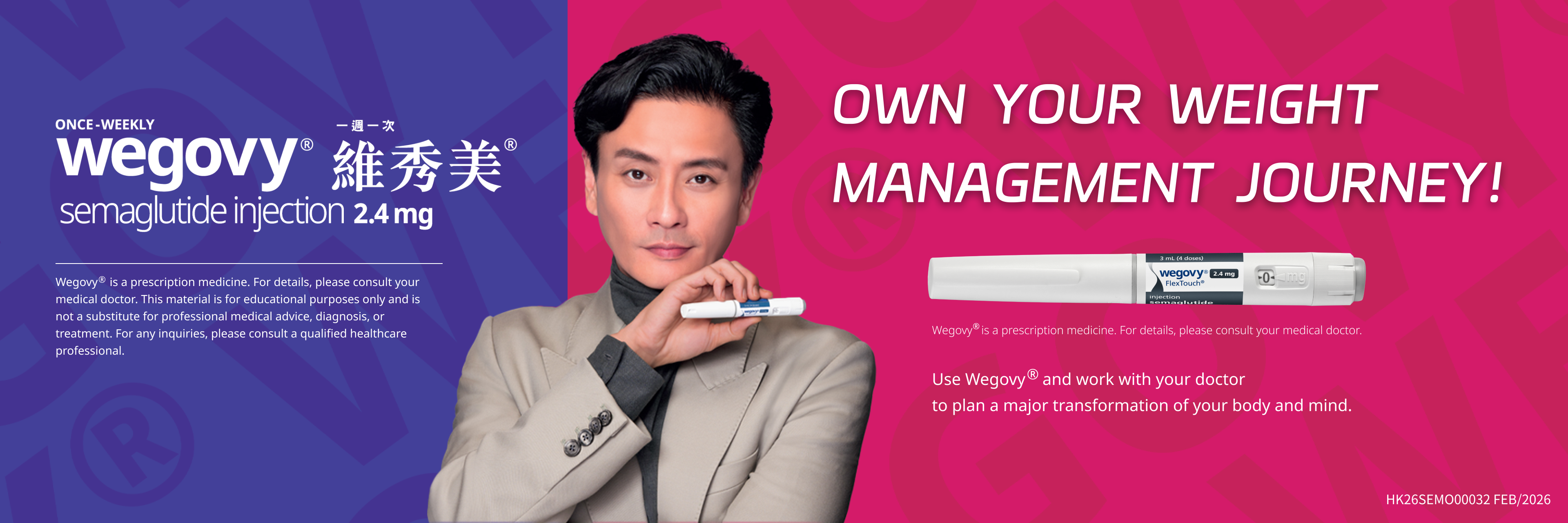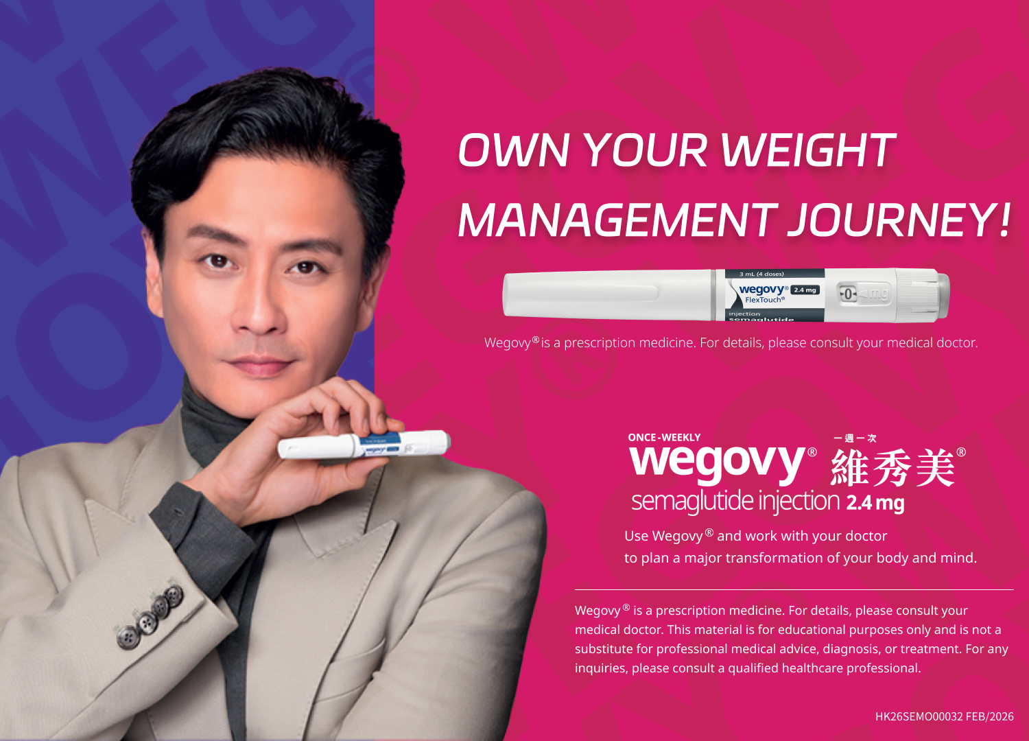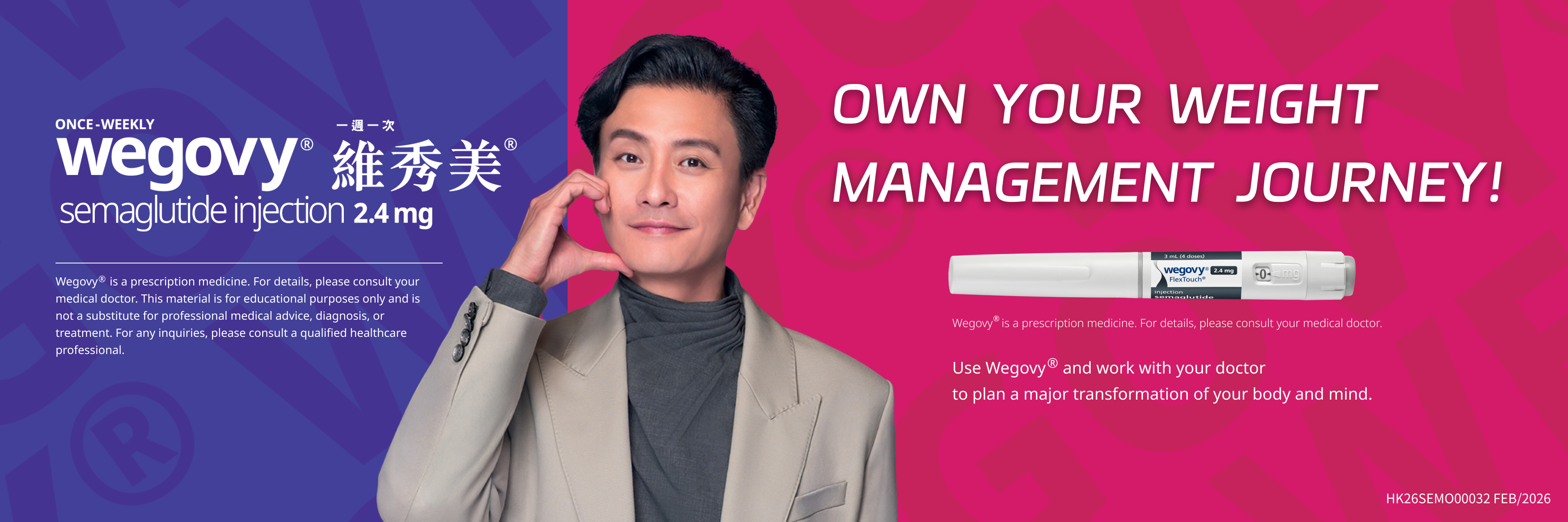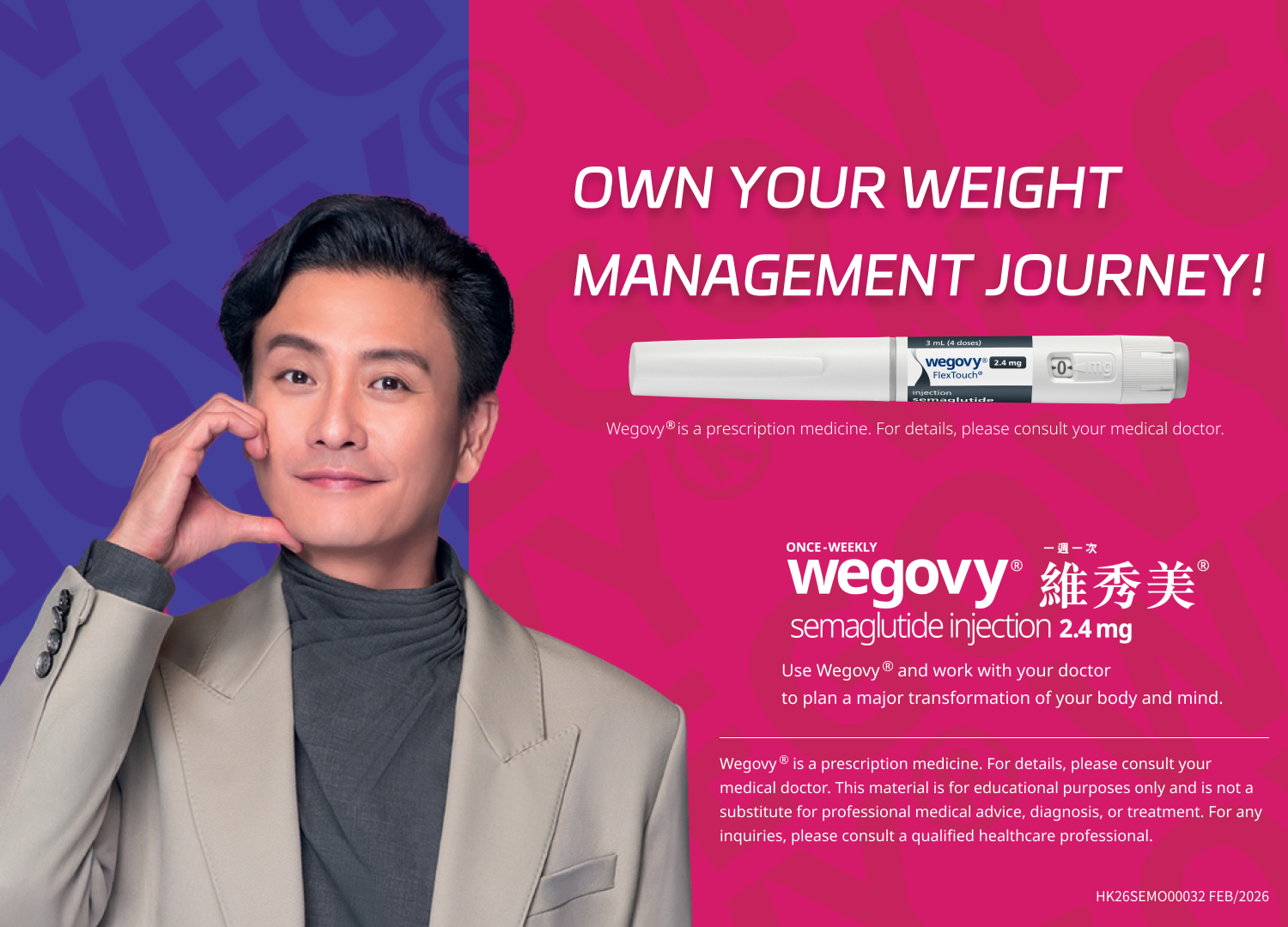 參考資料 Wegovy®為處方藥物,有關詳情請向醫生查詢。