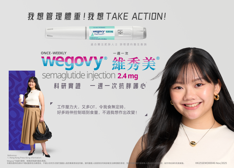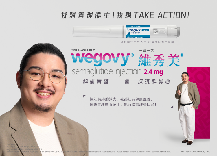 本廣告提供的資料不構成醫學及治療意見,不能以任何方式取代醫護人員的專業意見或判斷。請向醫護人員查詢任何與診斷及治療相關的事宜,包括有關藥物可能對個人造成的任何禁忌症,副作用或潛在危害建議。 HK25SEMO00046 Nov/2025